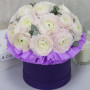 17 белых ранункулюсов в шляпной коробке в Архангельске